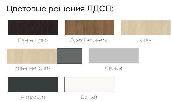 Цвета ЛДСП: Орех Гварнери, Серый, Белый, Клен Металлик, Венге Цаво, Клен, Антрацит.